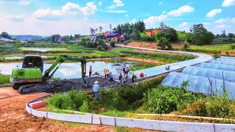 自貢網(wǎng)自貢網(wǎng)記者 羅樂 李秋玥 5月23日下午,在榮縣鼎新鎮(zhèn)學(xué)堂村,一條4.5米寬的混凝土村道正跨越田野,蜿蜒呈現(xiàn)。作為該鎮(zhèn)6.3公里通村公路建設(shè)項(xiàng)目的組成部分,該村道全長(zhǎng)1.7公里,建成后將大大方便學(xué)堂村村民出行和蔬菜外運(yùn)。 記者在施工現(xiàn)場(chǎng)看到,混凝土運(yùn)輸車和挖掘機(jī)正在來來回回地穿梭作業(yè)。通過加寬改造,原有的泥巴路“穿衣戴帽”,搖身一變成為一條潔美路,已經(jīng)鋪裝完成的路段正在進(jìn)行覆膜養(yǎng)護(hù)。 “這條路是通
