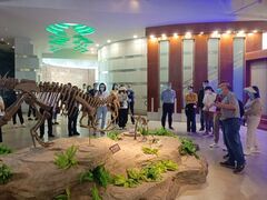 自貢網(wǎng)自貢網(wǎng)記者 歐亞非 周姝 陳翠 張馳 劉汶林 4月21日下午3點,媒體采風團來到此行第二站——自貢恐龍博物館,領略遠古奇觀,探尋侏羅紀奧秘。 在自貢這塊古老而神奇的土地上,恐龍化石最初如何被發(fā)現(xiàn)?經(jīng)歷了怎樣的挖掘過程?有哪些種類和特點?主要分布情況如何……“恐龍專家”彭光照帶領媒體采風團一路探尋,一邊將其中奧秘娓娓道來。 在博物館內的“龍宮課堂”,一群參加研學的小聽眾在專業(yè)老師的指導下,嘗試如何
