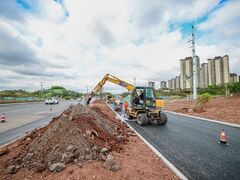 四川在線自貢網記者?周嘉?宋姿熠 3月23日,建設中的G348國道富榮產城融合帶基礎設施建設項目C、D段梁家壩互通立交雛形已現。據悉,金海路至梁家壩立交段已實現全幅車道臨時通車。 梁家壩互通立交是富榮產城融合帶首個重難點控制性工程,主要包括4條主線橋以及8條匝道橋,橋梁全長2953.9米?!霸诒WC質量的前提下,今年以來,全線近1200名工人加班加點搶進度,目前,全部橋梁主體均已施工完成,并開始通車,極大