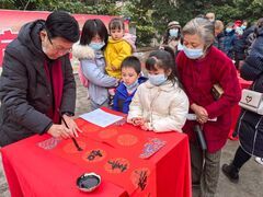 自貢網(wǎng)記者 卜一珊 1月16日,由自貢市婦聯(lián)主辦,自貢市心靈花園婚姻家庭教育咨詢中心、高新區(qū)大巖社區(qū)承辦的“把愛(ài)帶回家——迎新春、寫(xiě)春聯(lián)、送祝福”活動(dòng)在大巖社區(qū)豐寧小區(qū)開(kāi)展?;顒?dòng)邀請(qǐng)了自貢市的知名書(shū)法家現(xiàn)場(chǎng)書(shū)寫(xiě)春聯(lián)和福字,為社區(qū)居民送去新春祝福。 活動(dòng)現(xiàn)場(chǎng)熱鬧非凡。劉蘊(yùn)瑜、楊任堅(jiān)、許仕銘三名書(shū)法家揮毫潑墨,運(yùn)筆如飛,一幅幅喜慶吉祥春聯(lián)和“?!弊趾材h香,被社區(qū)居民爭(zhēng)相收藏。社區(qū)居民古酉惠說(shuō),以前過(guò)