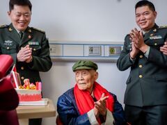 自貢網(wǎng)自貢網(wǎng)記者 葉艷 “祝你生日快樂……”12月16日上午,西部戰(zhàn)區(qū)總醫(yī)院的一處病房內(nèi)熱鬧非凡,自貢離職干部休養(yǎng)所領(lǐng)導(dǎo)帶領(lǐng)工作人員一行,驅(qū)車從自貢趕到成都,為離休老干部宋來生精心慶祝百歲生日。 1921年12月出生的宋來生是自貢離職干部休養(yǎng)所建所至今,迎來百歲生日的首位老干部。他籍貫陜西省富縣,1947年4月入伍,1948年10月加入中國共產(chǎn)黨。歷任戰(zhàn)士、班長、排長、副連長、指導(dǎo)員、副政治教導(dǎo)員、人