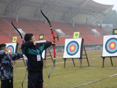 自貢網(wǎng)自貢網(wǎng)記者 陳凡逸 攝影 羅祥瑞 搭箭、扣弦、開弓……12月11日上午,自貢市第十四屆運動會射箭比賽在南湖體育中心開賽,這是該項目首次納入市運會比賽。 本次比賽吸引來自全5支代表隊的90名運動員參加,根據(jù)參賽者年齡分成甲、乙兩個組別,各組別分為男子組和女子組進行排位賽和淘汰賽,最終產(chǎn)生9枚金牌。 目前,我市在富順縣、榮縣和大安區(qū)建立了射箭基地,近年來自貢籍運動員多次在國家和省級射箭賽事中獲獎。