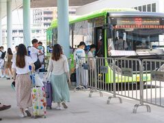 封面新聞自貢網(wǎng)記者 李秋玥 葉衛(wèi)東為滿足國慶假期高鐵出行需求,記者從據(jù)市交通運輸局了解到,從自貢站出站后,通過出站廊道,可以到達自貢站交通接駁廣場,不僅有配套公交車、擺渡車、網(wǎng)約車等,還設(shè)有社會車輛停車位,滿足不同旅客需求。“很方便,從高鐵下來直接可以換乘公交或出租車,我們還在服務(wù)站拿到了一份‘自貢手繪地圖’,將在自貢慢慢耍3天?!眮碜猿啥嫉挠慰屯跸家患冶硎?,怕高速路堵車,選擇乘高鐵來自貢,目前到站后享受