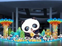自貢網(wǎng)自貢網(wǎng)記者 周姝位于中國(guó)西部博覽城9號(hào)館的大型主題燈組《四川歡迎您》,展示了自貢彩燈高超的制燈技藝,以四川最具特征的熊貓作為元素,以“三九大”為背景,凸顯四川的青山綠水,動(dòng)物快樂(lè)生活的美好場(chǎng)景。燈組主體造型是一只高6米的大熊貓,這是國(guó)內(nèi)最大的彩燈熊貓,藝術(shù)地展示了大美四川開(kāi)拓前行的無(wú)窮活力,給觀眾帶來(lái)賞心悅目的視覺(jué)震撼。這只超大熊貓采用仿真皮毛工藝,使其惟妙惟肖、憨態(tài)可掬。圍繞在大熊貓周圍的22只