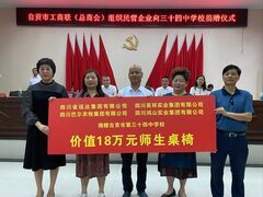自貢網(wǎng)記者 王樂樂6月25日,市工商聯(lián)(總商會(huì))扎實(shí)推進(jìn)“學(xué)黨史、辦實(shí)事”活動(dòng),組織遠(yuǎn)達(dá)集團(tuán)、英祥實(shí)業(yè)集團(tuán)、巴爾農(nóng)牧集團(tuán)、鴻山實(shí)業(yè)集團(tuán)4家民營企業(yè),向市第三十四中學(xué)捐贈(zèng)了價(jià)值18萬元的68套教師桌椅和300套學(xué)生課桌椅,大大改善了學(xué)校辦學(xué)條件。今年以來,市工商聯(lián)(總商會(huì))把學(xué)習(xí)黨史與慶祝中國共產(chǎn)黨成立100周年深度融合,將“學(xué)”與“做”無縫銜接,既重視協(xié)調(diào)解決民營企業(yè)的堵點(diǎn)、痛點(diǎn)問題,