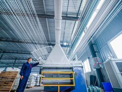 自貢網(wǎng)記者?周嘉 攝影 宋姿熠 10月13日,在位于自貢航空產(chǎn)業(yè)園的高分子化學(xué)纖維新材料項(xiàng)目車間,3條生產(chǎn)線開足馬力運(yùn)轉(zhuǎn),工人們個(gè)個(gè)干勁十足?!拔覀冎饕a(chǎn)高分子化學(xué)纖維新材料集裝袋,目前投入試生產(chǎn)的3條生產(chǎn)線每月產(chǎn)量達(dá)400噸,產(chǎn)值達(dá)500萬元以上?!痹擁?xiàng)目投資方負(fù)責(zé)人介紹說。 試生產(chǎn)“馬不停蹄”,項(xiàng)目建設(shè)“快馬加鞭”。高分子化學(xué)纖維新材料項(xiàng)目總投資約3600萬元,目前已完成項(xiàng)目建設(shè)進(jìn)度70%