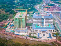 自貢網(wǎng)自貢網(wǎng)記者 卜一珊 攝影 宋姿熠 10月10日上午,隨著最后一方混凝土澆筑完畢,自貢市老年病醫(yī)院建設(shè)項(xiàng)目二期工程主體結(jié)構(gòu)正式封頂,比原計(jì)劃主體封頂時(shí)間提前45天。此次封頂,意味著該項(xiàng)目主體結(jié)構(gòu)施工已完成,正式進(jìn)入室內(nèi)外裝修及安裝工程階段,預(yù)計(jì)2023年12月底竣工并投入使用。 據(jù)悉,該項(xiàng)目是省、市級(jí)重大項(xiàng)目,位于貢井區(qū)長土鎮(zhèn)石牛村,占地面積25畝,建筑面積6.2萬平方米,總投資近3億元,設(shè)置床位