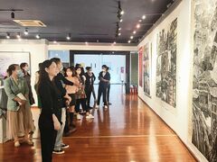 自貢網(wǎng)自貢網(wǎng)記者 周姝 近日,自貢市文化館黨支部的16名黨員走進(jìn)市藝術(shù)展覽廳,參觀“喜迎二十大,奮進(jìn)新征程”自貢市第二屆重大歷史題材美術(shù)作品展,在此開展了一場(chǎng)特殊的黨課。 本次展覽共展出44位畫家精心創(chuàng)作的66件作品,涵蓋國畫、油畫、水彩畫、鋼筆畫、版畫等畫種,聚焦自貢本土紅色革命文化、“三線建設(shè)”以及“鹽、龍、燈”等特色地域文化,是自貢這座國家歷史文化名城、老工業(yè)城市的藝術(shù)見證,描繪了這座城市在中國共