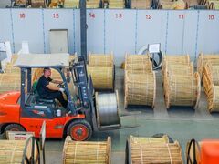 自貢網(wǎng)自貢網(wǎng)記者 繆靜 攝影 宋姿熠 “距離今年收尾還有不到4個月時間,保訂單是當前首要任務?!?月23日上午9點剛過,位于大安區(qū)北環(huán)路的四川威鵬電纜制造股份有限公司包裝車間內(nèi),各崗位忙碌而有序。副總經(jīng)理明亮正在叮囑大家細致做好產(chǎn)品交付的各項工作。眼前,即將運往澳大利亞的一批鋼芯鋁絞線整裝待發(fā)。 身后的電纜成品車間,裝卸車來回穿梭,一卷卷電纜整齊堆放于包裝區(qū)域,一個個電纜軸盤經(jīng)過木料嚴實打包后,被分區(qū)