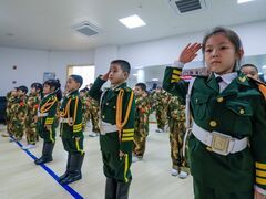 自貢網(wǎng)自貢網(wǎng)記者?陳凡逸 ?攝影 宋姿熠 9月23日,自貢市市級機關(guān)幼兒園舉行“慶國慶、升國旗、向祖國媽媽表白”活動,幼兒們用自己的方式表達對祖國媽媽的熱愛,祝愿祖國繁榮富強。 活動中,自流井區(qū)公安分局特警戰(zhàn)士將國旗升起,師生共同唱響紅歌《我們擁有一個名字叫中國》,幼兒表演了武術(shù)操《功夫小將》?!巴郏每岚?!”“這個裝備好沉呀!”“叔叔,穿上這身裝備好帥呀!”現(xiàn)場,特警教幼兒學習了擒拿拳并帶領(lǐng)幼兒觀摩