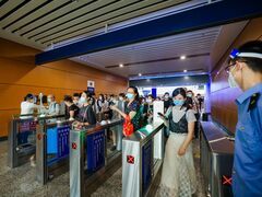 自貢網(wǎng)自貢網(wǎng)記者 李秋玥 8月27日,隨著暑假進(jìn)入尾聲,高鐵自貢站迎來一波返程高峰。記者從高鐵自貢站了解到,近段時(shí)間我市每日到發(fā)旅客近6000人,為做好疫情防控,保障市民乘車出行需求,自貢站提前做好了保障工作。 “請(qǐng)?zhí)崆按蜷_健康碼掃碼,憑綠碼通行”“請(qǐng)注意分散就座候車,全程佩戴好口罩?!?月27日,高鐵自貢站循環(huán)播放著語音提示,站內(nèi)工作人員進(jìn)行著安檢工作,沿灘高鐵志愿者對(duì)每一位進(jìn)入高鐵站的乘客進(jìn)行健康碼