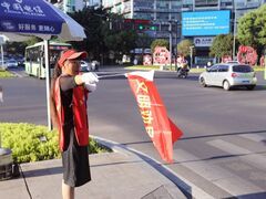 自貢網自貢網記者 王樂樂 攝影 羅祥瑞 8月12日,室外驕陽似火,酷暑難耐。但在我市各個路口,文明勸導員們卻在烈日下與人潮和車流為伴,用辛勤和汗水為廣大市民營造安全有序的出行環(huán)境。 早上6時許,太陽已經悄悄露出笑臉。高新區(qū)文明勸導員王水英騎上自行車,直奔她每天值勤的匯東大酒店門前斑馬線處,開始了一天的文明勸導工作。 早上7時05分,迎著火辣四溢的陽光,王水英提前到崗,整理好紅馬甲、胸前的小口哨,扶了扶