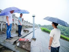 自貢網(wǎng)自貢網(wǎng)記者 羅樂(lè) 攝影 宋姿熠 盛夏的雙溪水庫(kù),山色空蒙、水波瀲滟。7月22日上午,一場(chǎng)突如其來(lái)的夏雨澆滅連日來(lái)的暑氣。自貢市小井溝雙溪水庫(kù)服務(wù)中心(以下簡(jiǎn)稱小雙水庫(kù)服務(wù)中心)工程科負(fù)責(zé)人與同事們撐著雨傘,先后對(duì)水庫(kù)大壩、溢洪道、取水塔開(kāi)展日常巡視檢查。 雙溪水庫(kù)作為自貢城區(qū)、榮縣縣城和雙引管線沿途鄉(xiāng)鎮(zhèn)近百萬(wàn)群眾重要的生活飲用水水源地,且壩址距離榮縣縣城僅1.5公里,安全度汛責(zé)任重于泰山。今年1