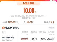 川觀新聞據(jù)網(wǎng)絡(luò)平臺(tái)數(shù)據(jù) 截至2月2日16時(shí)56分 2025大年初五單日票房破10億 春節(jié)檔已連續(xù)5天單日大盤票房破10億 此外 2025年中國(guó)電影市場(chǎng)累計(jì)票房 超北美票房成績(jī) 位列全球第一 《哪吒之魔童鬧?!贰短铺?900》 《封神第二部:戰(zhàn)火西岐》 分列春節(jié)檔票房榜前三位 其中 《哪吒之魔童鬧海》票房突破30億