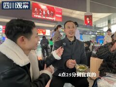 川觀新聞外面的世界再大,也抵不上心中的故鄉(xiāng)。 所有的出發(fā),都是為了回家。 2025年1月27日,除夕的前一天,成都東站的旅客們似乎也加快了腳步。他們來自天南地北,卻都有同一個(gè)方向——回家過年。 下午三點(diǎn),兩位背滿行囊的六旬夫婦正在候車大廳里,人手一碗青椒肉絲蓋飯。吃的雖然簡單,但二人臉上都洋溢著期待的笑容。兩人從杭州回到四川,在成都轉(zhuǎn)車去宜賓過年?!耙荒隂]回家了,希望家里人健康!”一句簡單的祝福,卻是無