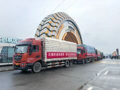 川觀新聞1月8日9點(diǎn)20分,裝載10萬斤、近4000箱雅安藏茶的六輛卡車,從318·川藏公路零公里自駕大本營緩緩駛出。這批藏茶將援助給千里之外的西藏日喀則定日縣地震災(zāi)區(qū)。 “一方有難,八方支援”。西藏日喀則定日縣發(fā)生6.8級地震后,雅安市委、市政府迅速響應(yīng),組織雅茶集團(tuán)、兄弟友誼茶廠、吉祥茶廠、雅安茶廠四家藏茶企業(yè)準(zhǔn)備了這批藏茶,給予西藏災(zāi)區(qū)群眾關(guān)懷與支持。 8點(diǎn)過,六輛卡車已經(jīng)“整裝待發(fā)”,車廂兩側(cè)拉