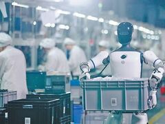 央視新聞四川省綿陽市長虹智能制造產(chǎn)業(yè)園內(nèi),“大圣”機(jī)器人正在搬運(yùn)物料箱。?彭紫薇攝(人民視覺)搬運(yùn)重物、掃碼貼簽……四川省綿陽市長虹智能制造產(chǎn)業(yè)園內(nèi),兩臺1.7米高的“綿陽造”人形機(jī)器人“上崗”,為批量化投產(chǎn)應(yīng)用做現(xiàn)場實(shí)測準(zhǔn)備。 這些“裝配工”代號為“大圣”,由兩家企業(yè)聯(lián)合研制?!罢摗眢w素質(zhì)’,它們與人無異,具備擬人的形態(tài)、移動(dòng)能力和操作能力?!表?xiàng)目相關(guān)負(fù)責(zé)人袁海輝介紹,該機(jī)器人運(yùn)動(dòng)速度可達(dá)每小時(shí)6公里