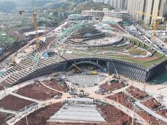 四川觀察易奎西?封面新聞記者?陳遠揚 12月18日,四川資陽市安岳縣安岳石窟數(shù)字展示中心項目現(xiàn)場,517名工人來回穿梭,建設(shè)氛圍火熱。 目前,該項目主體工程已全面完工。內(nèi)部裝飾、幕墻裝飾、園林景觀、泛光照明等項目正同步進行,整體進度已完成約90%。再有一個月,便是項目初期交付的日子。屆時,當?shù)貙⒂瓉砣ㄎㄒ灰蛔邤?shù)字展示中心,新增一處地標性旅游首站落腳點。 安岳石窟數(shù)展中心項目建設(shè)全貌。科技把控智能 石