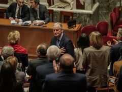 新華社巴黎12月17日電(記者李文昕)日前,法國巴尼耶政府遭國民議會彈劾下臺,其主導(dǎo)的2025年預(yù)算案宣告流產(chǎn)。13日,法國總統(tǒng)馬克龍任命民主運動黨主席弗朗索瓦·貝魯為新總理。14日,國際信用評級機構(gòu)穆迪公司下調(diào)法國主權(quán)信用評級,反映出在政治持續(xù)分裂背景下,法國經(jīng)濟特別是財政前景面臨風(fēng)險。 12月4日,在法國巴黎,時任法國總理巴尼耶(中)在國民議會就對政府不信任動議投票表決前辯論上發(fā)言后離開。新華