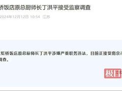 央視新聞客戶端12月12日,據(jù)“玄武清風(fēng)”微信公眾號消息,南京虹橋飯店原總廚師長丁洪平涉嫌嚴重職務(wù)違法,目前正接受南京市玄武區(qū)監(jiān)委監(jiān)察調(diào)查。 南京虹橋飯店原總廚師長被調(diào)查 來自微信公眾號“玄武清風(fēng)”據(jù)“南京虹橋飯店”官方微信公眾號介紹,南京虹橋飯店于1986年12月開業(yè),是江蘇省總工會直屬全民所有制企業(yè)。2022年飯店開始升級改造工程,打造花園式酒店,并委托金陵酒店管理公司管理,將于2024年底對外試營業(yè)。 1