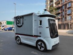 涼山州新聞傳媒中心沒有駕駛室、也沒有駕駛員,遇到紅綠燈會(huì)停車,會(huì)禮讓行人,一系列操作宛如“老司機(jī)”……這幾天,一身經(jīng)典黑白熊貓配色、忽閃著“大眼睛”的低速無人配送車出現(xiàn)在成都龍泉驛街頭,引來不少行人好奇的目光。 記者了解到,這群“小可愛”前不久正式拿到了上路的“資格證”,是四川首批在開放環(huán)境投入規(guī)?;虡I(yè)運(yùn)營的低速無人車。 無人車如何實(shí)現(xiàn)自動(dòng)配送?如何安全行駛?對(duì)此,記者進(jìn)行了實(shí)地探訪。 “車輛左轉(zhuǎn),請注意安全!
