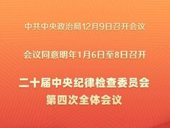 天府融媒中共中央政治局12月9日召開會議 會議同意明年1月6日至8日召開二十屆中央紀律檢查委員會第四次全體會議 記者:黃玥、王明玉