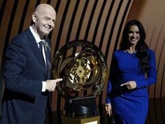 央視新聞客戶端國際足聯(lián)主席因凡蒂諾(左)在抽簽儀式上與世俱杯冠軍獎杯合影。 圖/新華社新京報(bào)訊 12月6日,國際足聯(lián)在邁阿密舉行了2025世俱杯抽簽儀式,32隊(duì)分組抽簽結(jié)果出爐。梅西所在的東道主球隊(duì)邁阿密國際抽到好簽,成功避開歐洲五大聯(lián)賽球隊(duì)。此外,曼城與尤文同組,皇馬遇利雅得新月。 參加世俱杯的32支球隊(duì)分成8組,每組前兩名出線。賽事將于2025年6月15日至7月13日在美國11個城市的12個場館進(jìn)行,揭幕戰(zhàn)