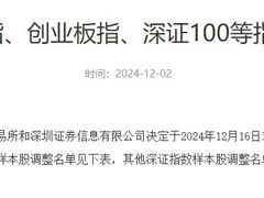 川觀新聞12月2日,深交所發(fā)布《關(guān)于調(diào)整深證成指、創(chuàng)業(yè)板指、深證100等指數(shù)樣本股的公告》,內(nèi)容如下: 根據(jù)指數(shù)編制規(guī)則,深圳證券交易所和深圳證券信息有限公司決定于2024年12月16日對(duì)深證成指、創(chuàng)業(yè)板指、深證100等指數(shù)實(shí)施樣本股定期調(diào)整。 部分指數(shù)樣本股調(diào)整名單如下: