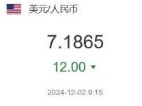 天府新視界中新網(wǎng)12月2日電 據(jù)中國(guó)外匯交易中心網(wǎng)站消息,中國(guó)人民銀行授權(quán)中國(guó)外匯交易中心公布,2024年12月2日銀行間外匯市場(chǎng)人民幣匯率中間價(jià)為:1美元對(duì)人民幣7.1865元,上調(diào)12個(gè)基點(diǎn)。 截圖自中國(guó)外匯交易中心網(wǎng)站