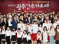 光明網(wǎng)中新網(wǎng)首爾11月26日電 (記者 劉旭)第二屆光州中韓歌謠大賽23日在韓國光州成功舉行。 圖為大賽現(xiàn)場合影。中國駐光州總領(lǐng)事館 供圖此次大賽由中國駐光州總領(lǐng)事館、韓國湖南大學(xué)和韓中經(jīng)濟(jì)文化教育協(xié)會共同主辦。中國駐光州總領(lǐng)事顧景奇出席并致辭,副總領(lǐng)事周積華、光山區(qū)議長金明洙、湖南大學(xué)校長樸相澈及韓中經(jīng)濟(jì)文化教育協(xié)會理事長申京淑等參加。 顧景奇表示,中方近來先后宣布對韓試行和優(yōu)化免簽政策,為兩國友好往