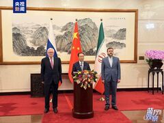 央視新聞客戶端今天(14日)上午,中方舉行伊朗核問題中俄伊北京會(huì)晤。外交部副部長(zhǎng)馬朝旭在會(huì)晤結(jié)束后的記者會(huì)上表示: 三方強(qiáng)調(diào)終止所有非法單邊制裁的必要性。有關(guān)方應(yīng)致力于消除造成當(dāng)前局勢(shì)的根源,摒棄制裁施壓、武力威脅。我們強(qiáng)調(diào)聯(lián)合國(guó)安理會(huì)第2231號(hào)決議及其時(shí)間框架的重要性,呼吁有關(guān)各方避免采取升級(jí)局勢(shì)的行動(dòng),共同為外交努力創(chuàng)造有利氛圍和條件。