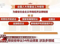 央視新聞客戶端3月8日提請十四屆全國人大三次會議審議的全國人大常委會工作報(bào)告,透露了2025年度國家立法“發(fā)力點(diǎn)”。今年的立法工作怎么干?哪些領(lǐng)域的立法您最關(guān)注? 全國人大常委會工作報(bào)告顯示,2025年預(yù)安排審議34件法律案。 其中在經(jīng)濟(jì)領(lǐng)域,為健全社會主義市場經(jīng)濟(jì)法律制度,我國將制定民營經(jīng)濟(jì)促進(jìn)法、國家發(fā)展規(guī)劃法、金融法、金融穩(wěn)定法、耕地保護(hù)和質(zhì)量提升法;修改反不正當(dāng)競爭法、企業(yè)破產(chǎn)法、農(nóng)業(yè)法、漁業(yè)法、民用航