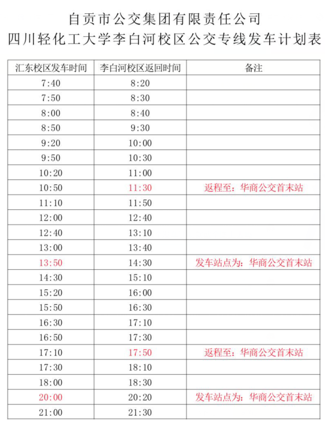 1、四川輕化工大學(xué)匯東校區(qū)—李白河校區(qū)專線: