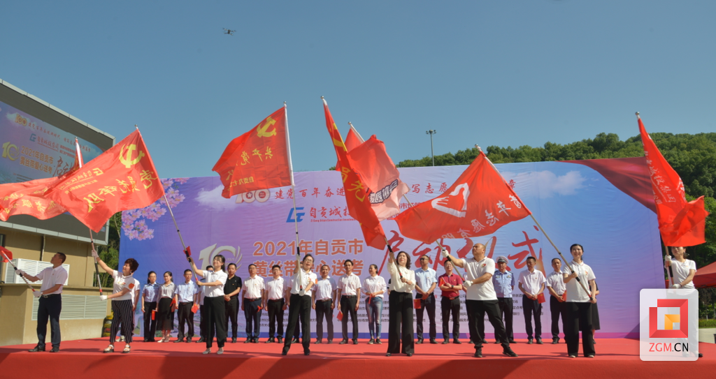 現(xiàn)場(chǎng),為2021自貢市黃絲帶愛(ài)心送考活動(dòng)進(jìn)行了授旗。