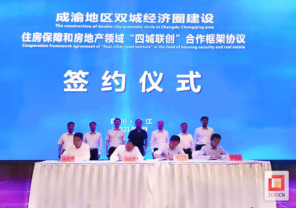 6月18日上午,自貢市、內(nèi)江市,重慶市永川區(qū)、榮昌區(qū)《成渝地區(qū)雙城經(jīng)濟(jì)圈建設(shè)住房保障和房地產(chǎn)領(lǐng)域“四城聯(lián)創(chuàng)”合作框架協(xié)議》簽約儀式在內(nèi)江舉行,4城將在住房保障、市場監(jiān)管、物業(yè)管理、行業(yè)協(xié)會建設(shè)等領(lǐng)域開展深入合作,實現(xiàn)資源共享、市場共建、產(chǎn)業(yè)共興,提升4城的綜合競爭力和區(qū)域影響力。