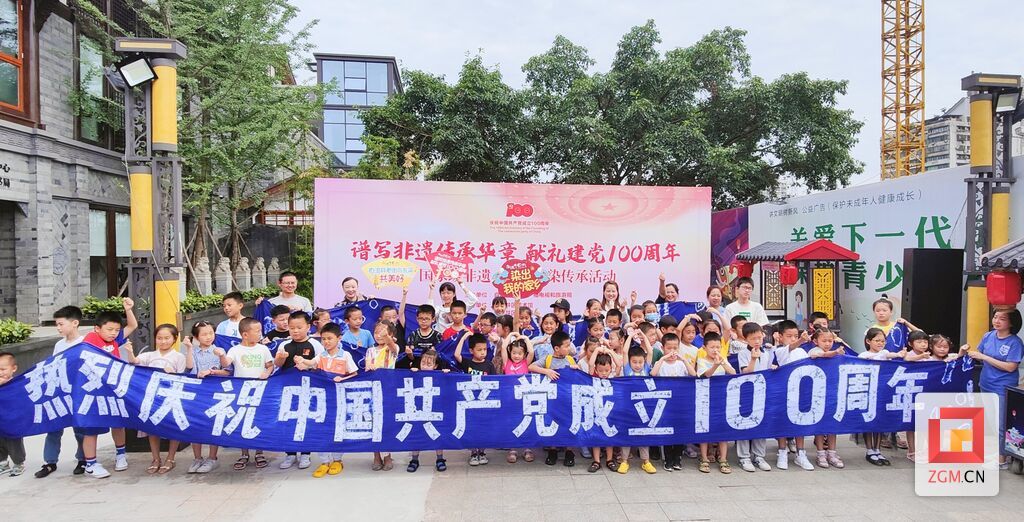 6月19日,國家級非遺·自貢扎染傳承活動在自流井老街火熱開啟。100名7歲到14歲的少年兒童共同在一張長100米的白布上制作扎染,用不同的扎染方式扎出花色各異的扎染紋樣,獻(xiàn)禮建黨100周年。