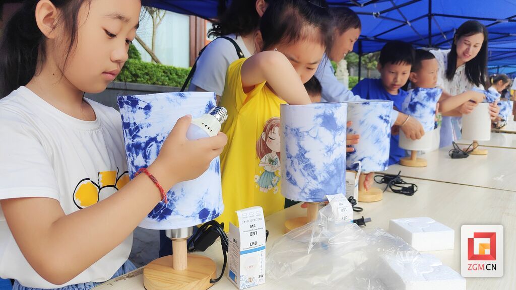 活動現(xiàn)場還為孩子們準(zhǔn)備了免費的臺燈和扎染布料,孩子們紛紛高興地為自己手中的臺燈,套上了扎染制成的燈罩,“扎染+彩燈”的融合,將自貢特色文化體現(xiàn)得淋漓盡致?!安粌H動手制作了,還把文創(chuàng)品帶回了家,讓孩子每天都能看到它,這樣的活動讓扎染文化融入了孩子的日常起居,使非遺文化得到真正的發(fā)揚與傳承。”家長朱利英表示。