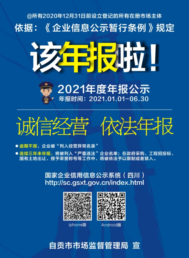 據介紹,依據《企業(yè)信息公示暫行條例規(guī)定》,此次申報對象為所有2020年12月31日前,設立登記的在冊市場主體,年報時間為2021年1月1日至6月30日。