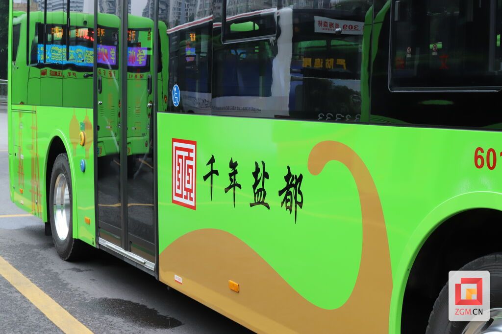 3、文化植入,更有品味:車身以綠色為底色,采用設(shè)計(jì)專家設(shè)計(jì)的彰顯自貢鹽、龍、燈元素的圖案,車內(nèi)視窗同步植入“鹽、龍、燈”文化元素;