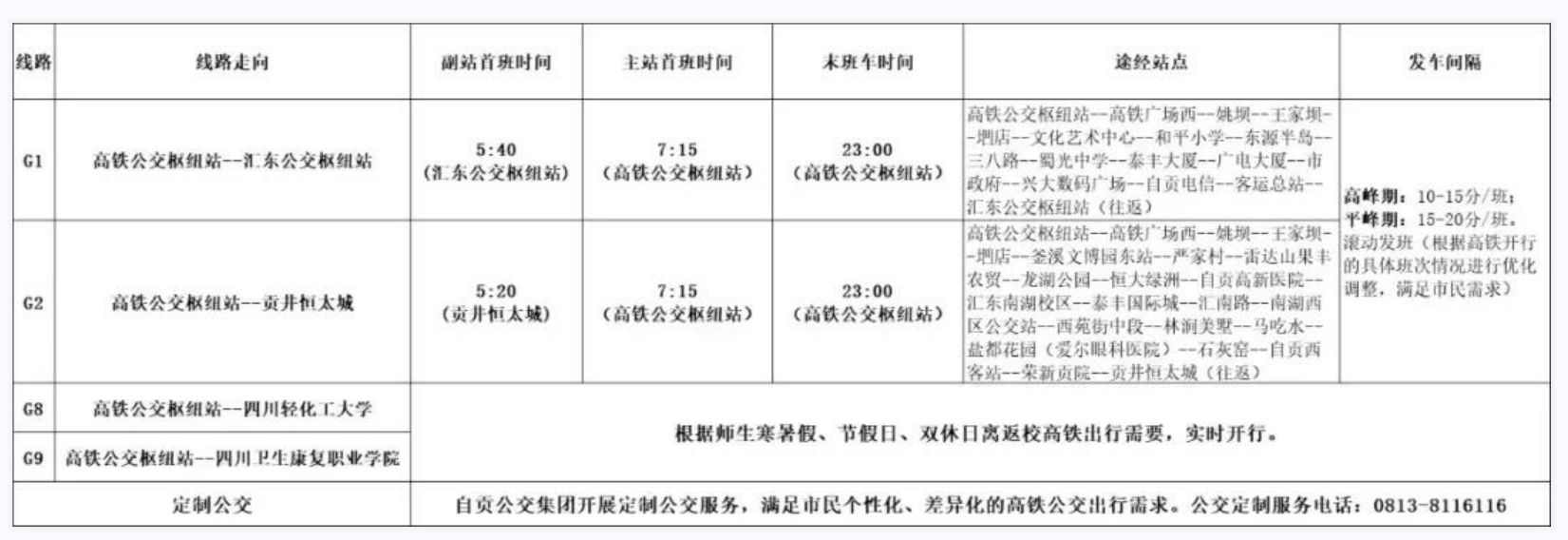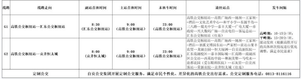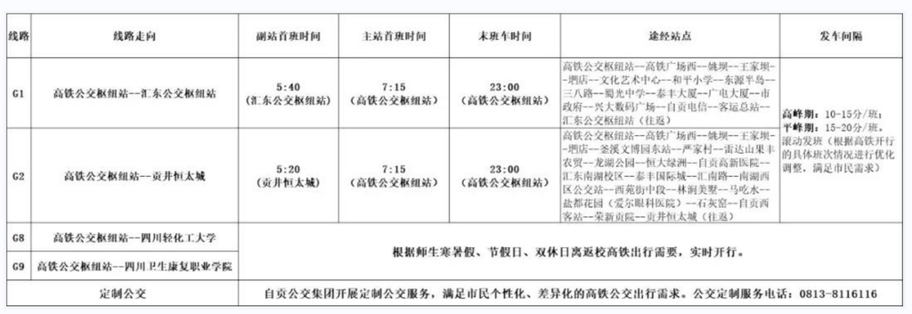6月27日下午,記者從自貢公交集團(tuán)了解到,明(6月28)日,綿瀘高鐵內(nèi)自瀘段正式開通,我市高鐵公交快線G1、G2路將同步開始運(yùn)行。