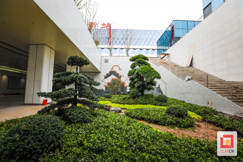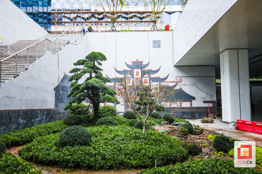 目前,古鎮(zhèn)仙蹤、平橋飛瀑、會館春秋和燈城萬象4幅作品已完成,旅客可以在候車大廳天井位置觀賞到這4處景觀。