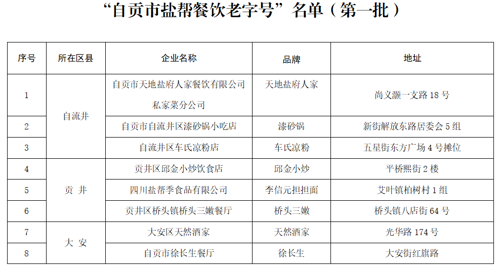 (二)“自貢市鹽幫餐飲20年老字號(hào)”品牌創(chuàng)立時(shí)間需在2001年以前;“自貢市鹽幫餐飲30年老字號(hào)”品牌創(chuàng)立時(shí)間需在1991年以前;“自貢市鹽幫餐飲50年老字號(hào)”品牌創(chuàng)立時(shí)間需在1971年以前。(品牌創(chuàng)立時(shí)間需提供相應(yīng)佐證材料)
