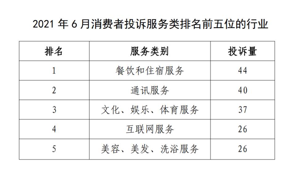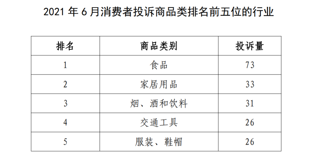 7月14日,市市場(chǎng)監(jiān)管局向社會(huì)公布我市6月消費(fèi)投訴情況。據(jù)悉,6月消費(fèi)者投訴商品類(lèi)前五位的行業(yè)分別是食品類(lèi),家居用品類(lèi),煙、酒和飲料類(lèi),交通工具類(lèi)和服裝、鞋帽類(lèi);6月消費(fèi)者投訴服務(wù)類(lèi)前五位的行業(yè)分別是餐飲和住宿服務(wù),通訊服務(wù),文化、娛樂(lè)、體育服務(wù),互聯(lián)網(wǎng)服務(wù),美容、美發(fā)、洗浴服務(wù)。