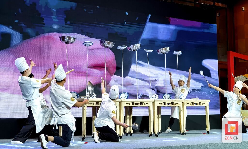 自貢雜技團(tuán)帶去精彩的情景雜技《快樂(lè)的廚房》,日常生活中的鍋碗瓢盆變?yōu)殡s技道具,奏響了一出別開(kāi)生面的廚房交響曲。