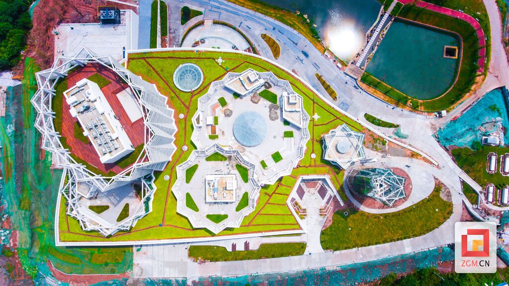 “剝”去建筑圍網(wǎng)顯露真身,在植物綠化、室外亮化工程以及透水混凝土路面全部完工后,一期工程區(qū)域整體感突顯,建筑群幾何美感給人以巨大的視覺沖擊。