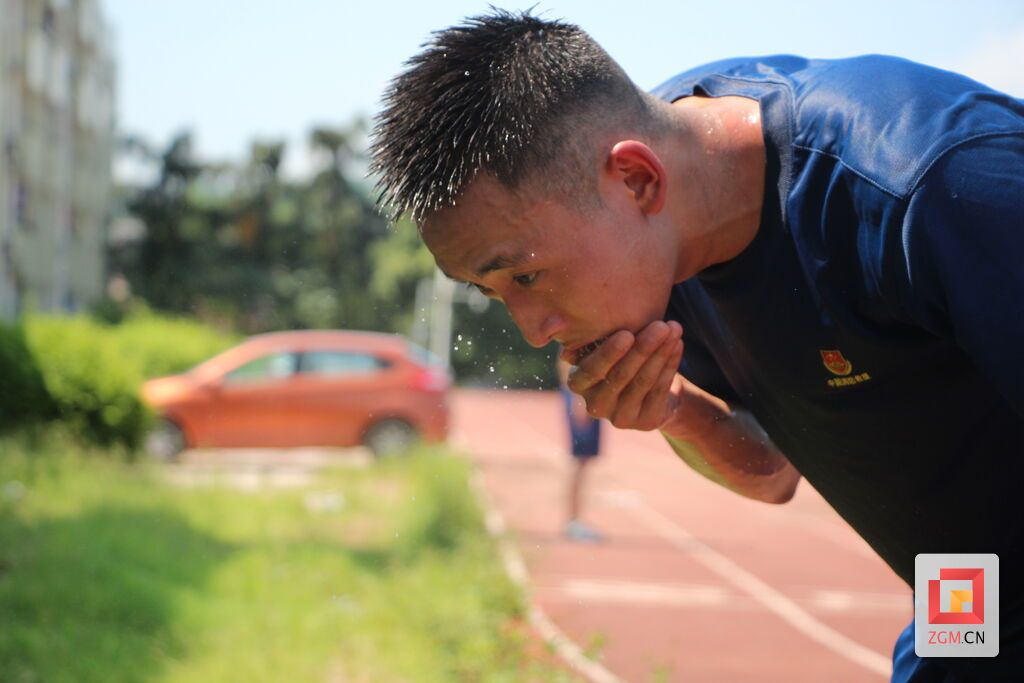 “堅持住,還有最后三圈?!眮碜灾ш犠鲬?zhàn)訓練科的“考官”在場邊掐著秒表,在提醒場上隊員的同時,也在給他們加油打氣。