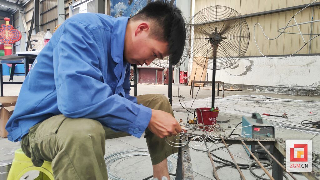 8月10日下午,記者走進(jìn)自貢燈貿(mào)集團(tuán)股份有限公司生產(chǎn)車間,4名彩燈造型師就像魔術(shù)師一般,讓手中冰冷鋼絲,變成了栩栩如生的造型?!皬?月中旬以來,我們就開始進(jìn)場(chǎng)施工,工作時(shí)并不覺得熱,常常引來一旁同事的關(guān)心?!痹?0多度的高溫下,38歲的彩燈造型師楊勝平因?yàn)樘度雱?chuàng)作,衣服濕了又穿干,還全然不知。