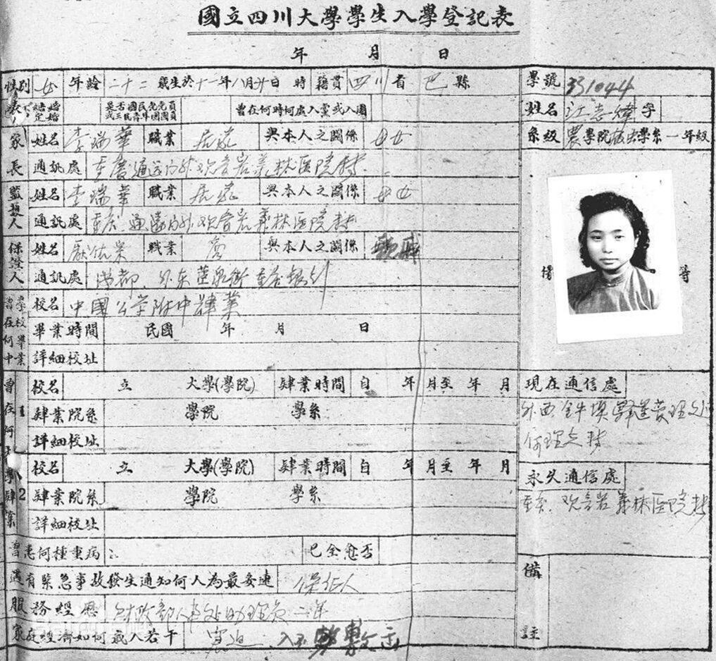 1944年5月,江竹筠到了成都。有一天,江竹筠在街上找工作時(shí),忽然看見(jiàn)國(guó)立四川大學(xué)的招生公告,她讀書(shū)的渴望再次被激起。她將這一想法告訴了彭詠梧,老彭非常支持,并很快得到了上級(jí)黨組織的批準(zhǔn)。江竹筠雖然讀過(guò)一年半的高中和一年的會(huì)計(jì)學(xué)校,但畢竟已經(jīng)離開(kāi)學(xué)校好幾年了,學(xué)習(xí)很吃力。但是,江竹筠僅用了兩個(gè)多月的時(shí)間補(bǔ)習(xí),便考入四川大學(xué)農(nóng)學(xué)院植物病蟲(chóng)害系。到四川大學(xué)后,江竹筠改名為江志煒。她對(duì)自己提出嚴(yán)格要求:“既要完成黨的任務(wù),又要做一個(gè)好學(xué)生?!?/p>