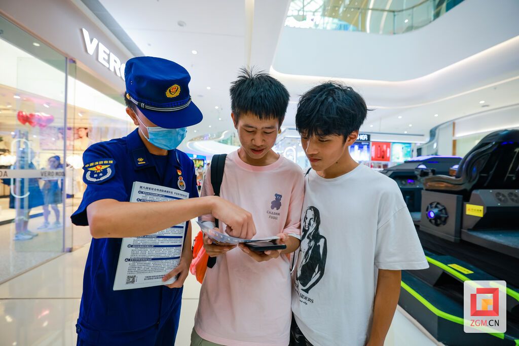18日下午,記者在愛琴海購物廣場,見到了和隊(duì)友一起張貼宣傳畫的匯川路特勤站消防員周勇。