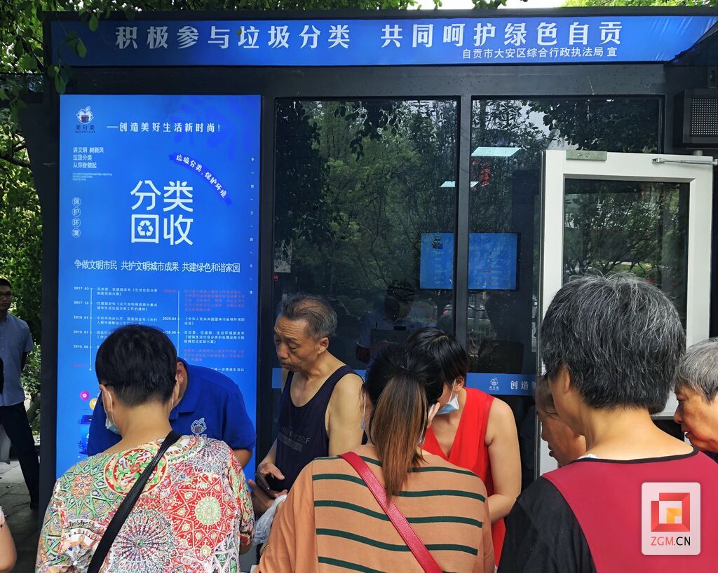記者還注意到,這一分類垃圾站都掛有滾動LED屏和電子屏,播放著垃圾分類知識和小視頻,居民看一看,基本就能找到不同垃圾合理投放的地方。
